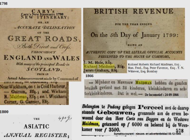 Uit de Indische almanakken blijkt dat in de negentiende eeuw op de westkust van Sumatra, met name in Padang, een groot aantal personen met de naam Maidman woonden.