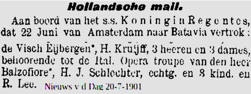 Kort daarna, op 22 juli 1898, ging hij per 'SS Oengarang' met de andere gezinsleden voor twee jaar naar Europa waar hij zijn familie in Duitsland bezocht, onder andere de familie P. Fashbender, Gustavestrasse 10, Essen aan de Ruhr.
