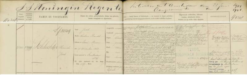 In het voormalige Koloniale Werfdepot te Harderwijk werd hij onder stamboeknummer 97280 als soldaat ingeschreven voor een dienstverband van zes jaar. Hij ontving een handgeld van 200 gulden.