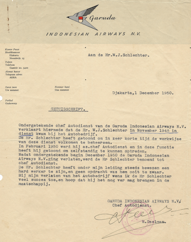 01-12-1950 chef autodienst Indonesian Airways Garuda.