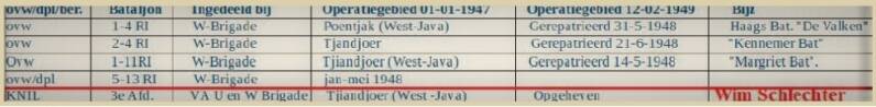 Op 4-5-1946 werden 1,2 en 3 Infanterie KNIL-bataljons aan de U-W-Brigade toegevoegd.