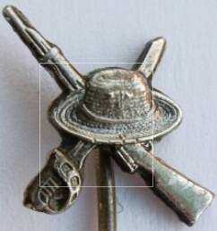 Het De mobilisatie insigne van het Koninklijk Nederlands Indisch Leger. Ingesteld in 1950 voor militairen die in het KNIL hadden gediend in de periode 1940-1945. Bestaande uit de afbeelding van een kruislings geplaatste karabijn en een leger klewang, waarboven een KNIL rimboe hoed. Gebrand zilver.