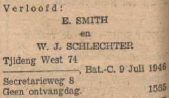 09-07-1946: William John Schlechter, verloofd met A. E. Smith te Batavia.