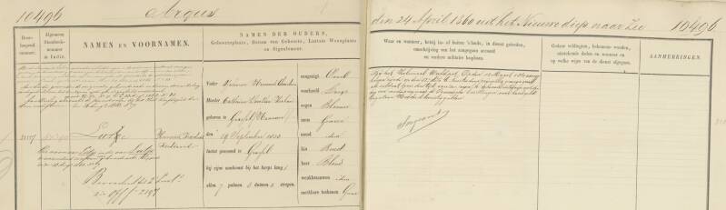 Aangever: de vader, die het kind voor het zijne erkent; Getuigen: Antonius de Wit, oud 46 jr, en Adrianus Visbeen, oud 37 jr, beiden zonder beroep en wonende te Semarang. Door het opvolgend huwelijk van de ouders op 5 mei 1909 is het kind in de genoemde acte gewettigd, RA 1907, 54: Auguste Charlotte Lutje (huw: Randwijk) geboren 30 april 1903, Semarang, Java, acte 56, aangifte 7 dec1905;